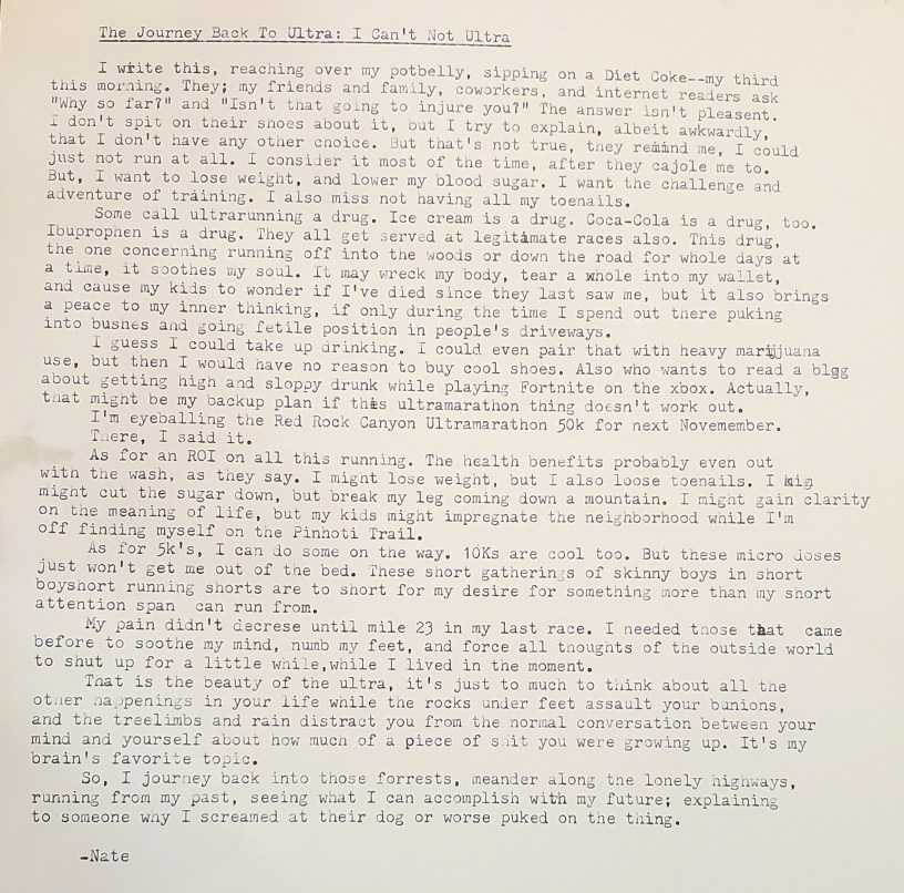 This is part 2 of a series titled: The Journey Back to Ultra. These writings have been kept in their first draft form to enable more authentic conversation.
